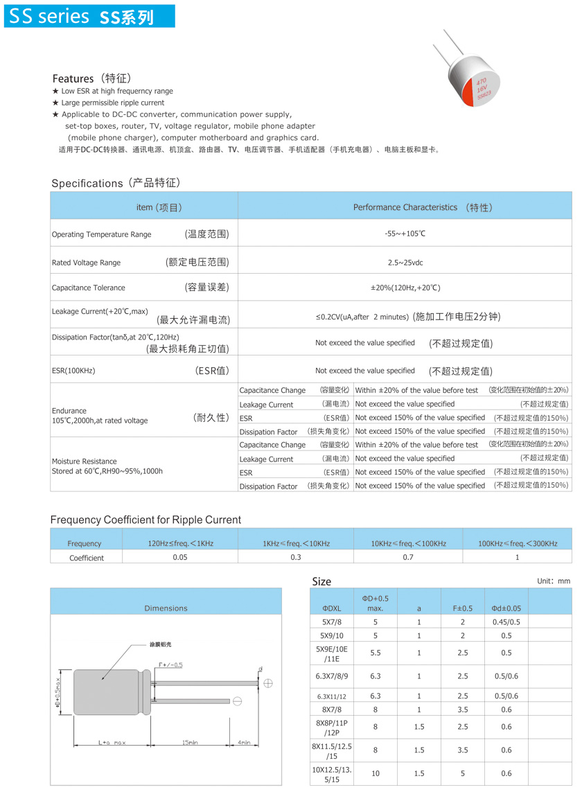 ● Chip type operating over wide temperature range -40 to +105"C . (贴片型,宽温域)