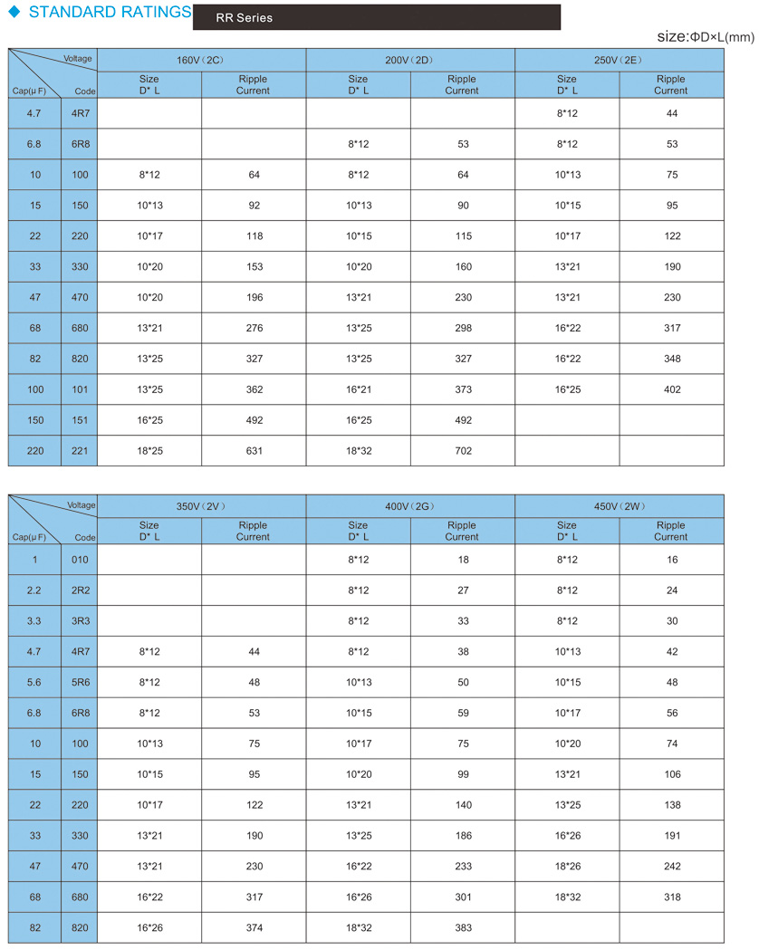 ● Life 5000 hours at +105°C(+ 105°C 5000小时寿命)