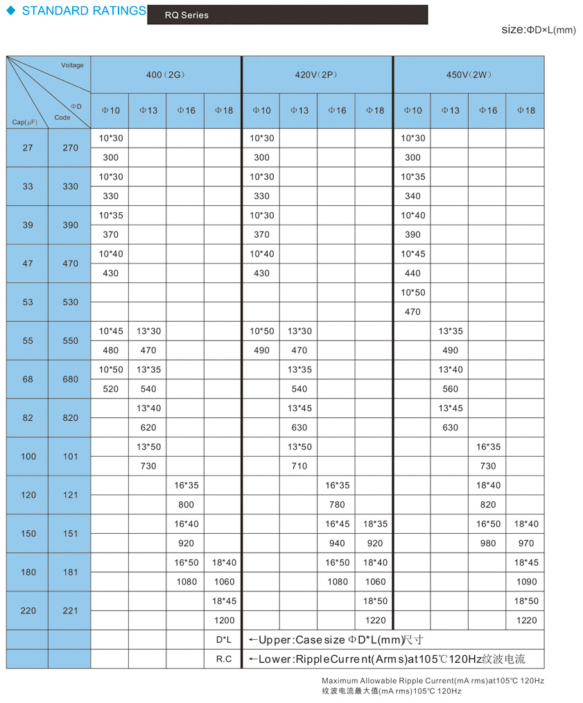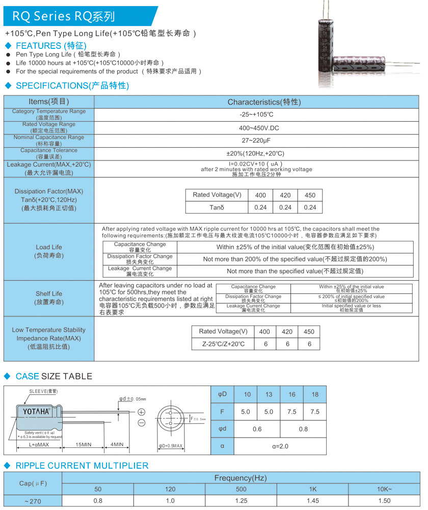 ● Life 10000 hours at +105°C(+105°C10000小时寿命)