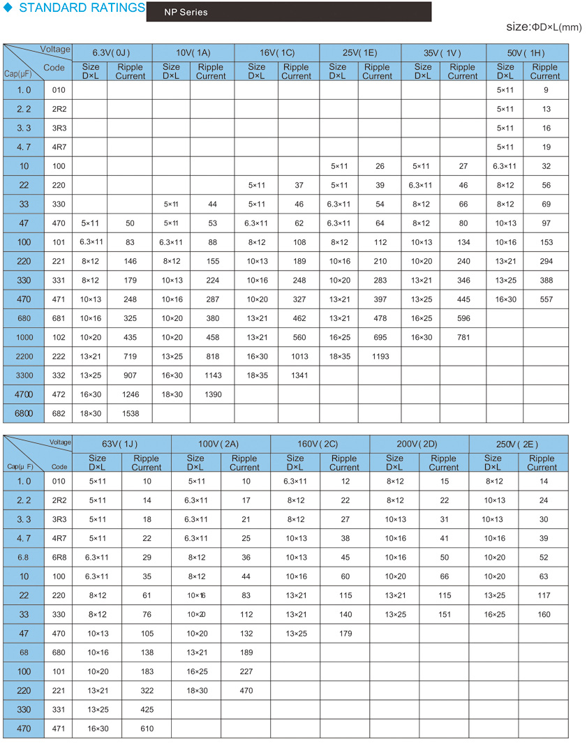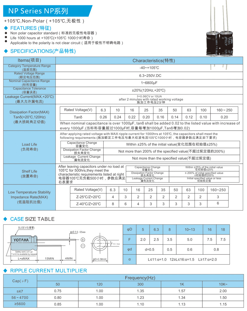 ● Life 1000 hours at +105°C(+105"C 1000小时寿命)