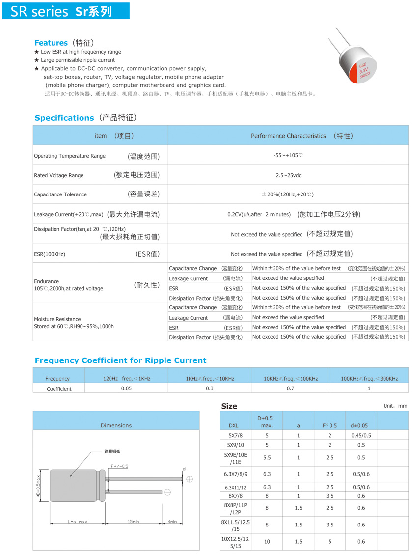 ● Chip type operating over wide temperature range -40 to +105"C . (贴片型,宽温域)