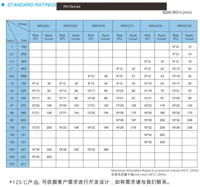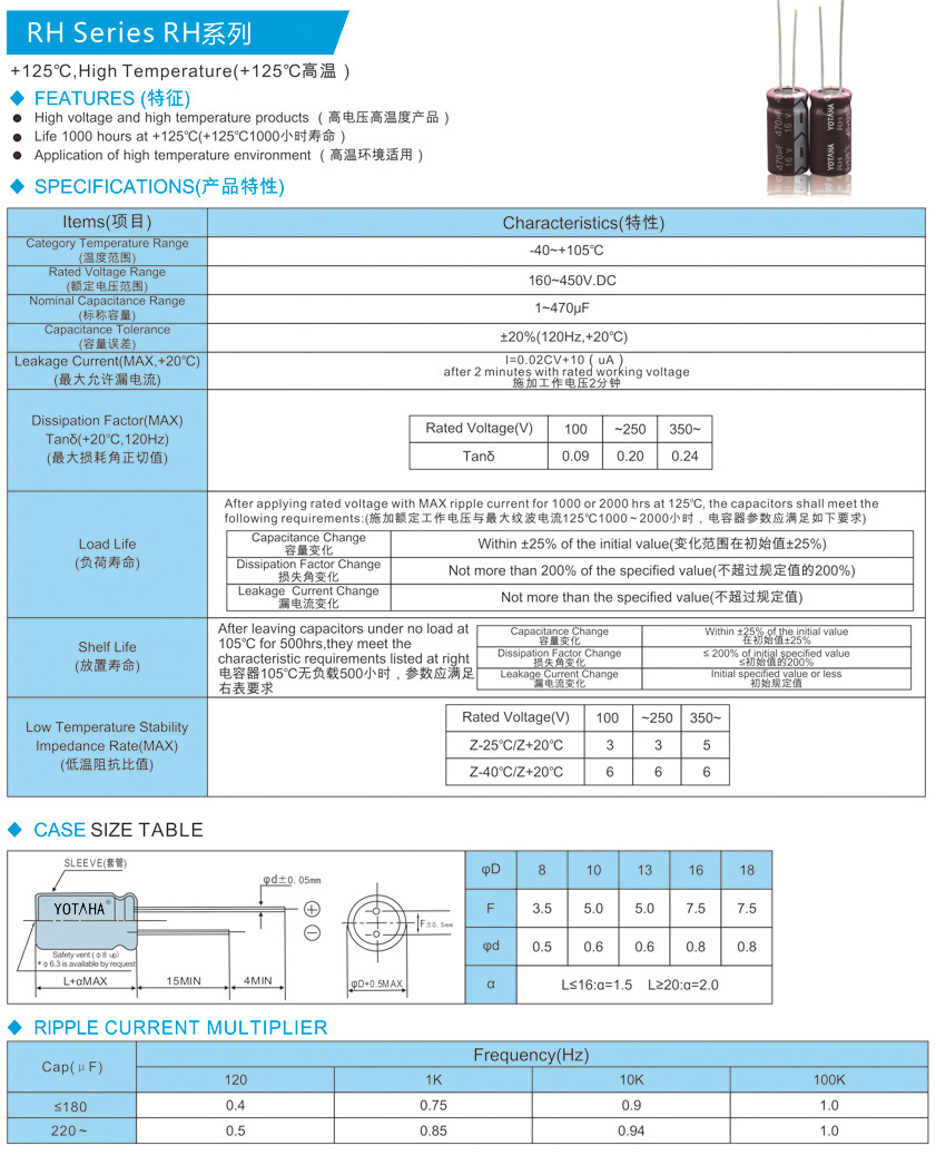 ● Life 1000 hours at + 125"C(+ 125°C1000小时寿命)
